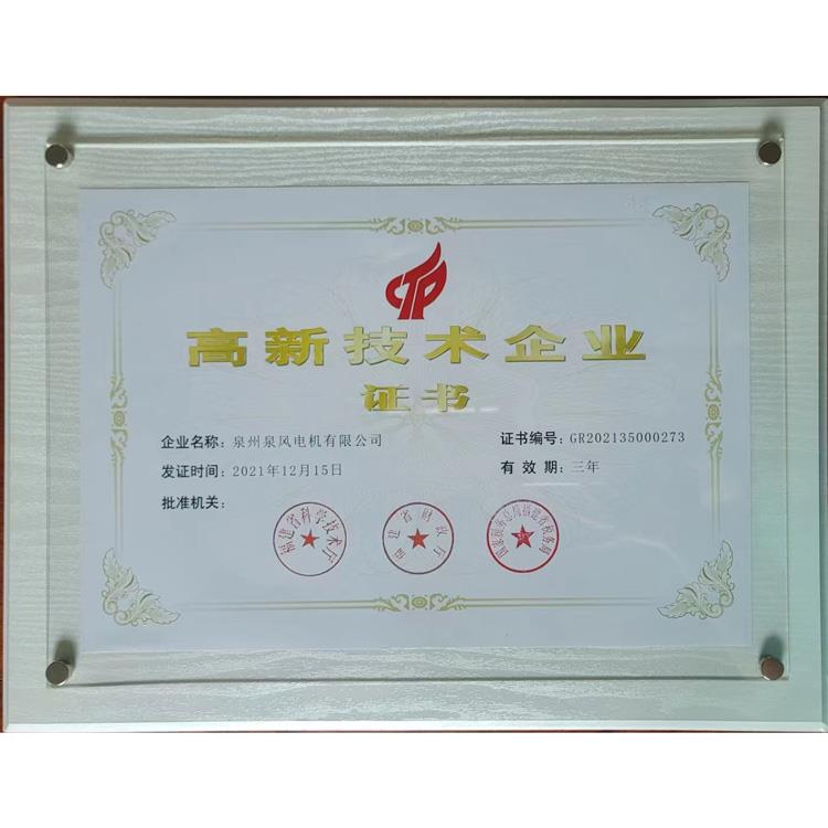 ??公司以建立現代化企業為目標,堅持“科技是首要生產力”,于2000年通過了ISO9001:2000國際質量體系認證、產品已獲得CCC強制性認證;美國UL、加拿大CUL、歐盟CE等安全認證。并獲得國家微電機產品檢測中心授予“行業監(jiān)督抽查合格單位”及“九五質量水平優(yōu)秀單位”,“泉風”牌風機被中國技術協會確定為 “風機行業質量十佳放心品牌”、“中國軸流風機十佳名優(yōu)品牌”。“泉風”牌產品已通過福建省新產品鑒定并獲得“福建省科技成果獎”、“省級優(yōu)秀新產品獎”、“省級科技進步獎”。 2006年度被福建省確認為“福建省高新技術企業”、“科技進步先進企業、“福建知名科技企業”。 “泉風”牌商標被評為“泉州市知名商標”。 2009年“泉風”牌商標被評為“福建省著名商標”。